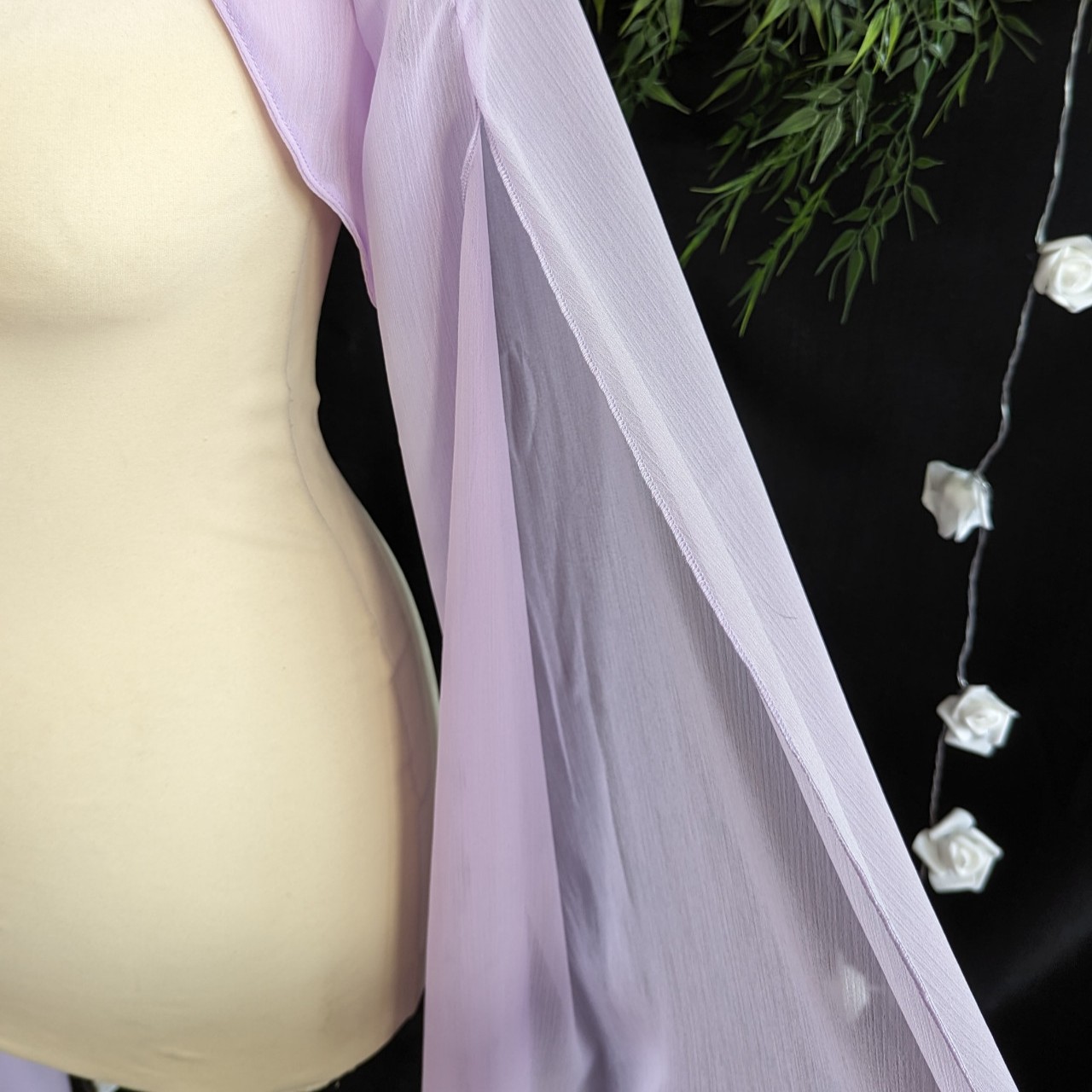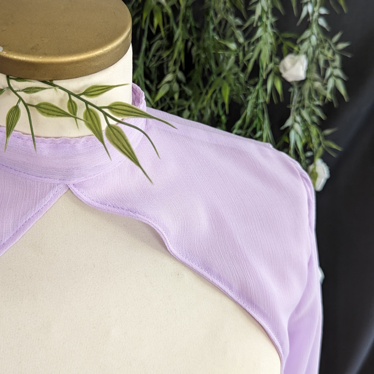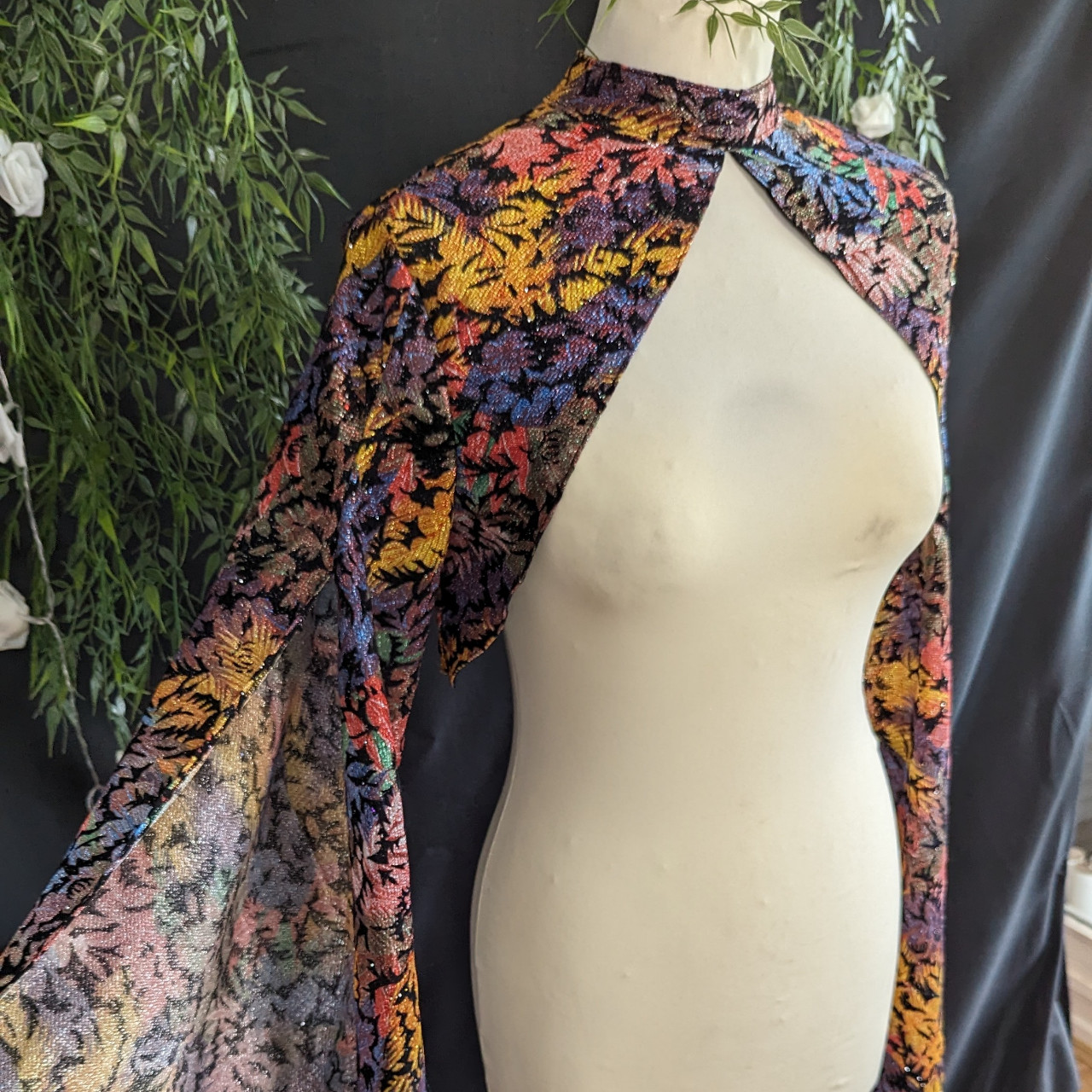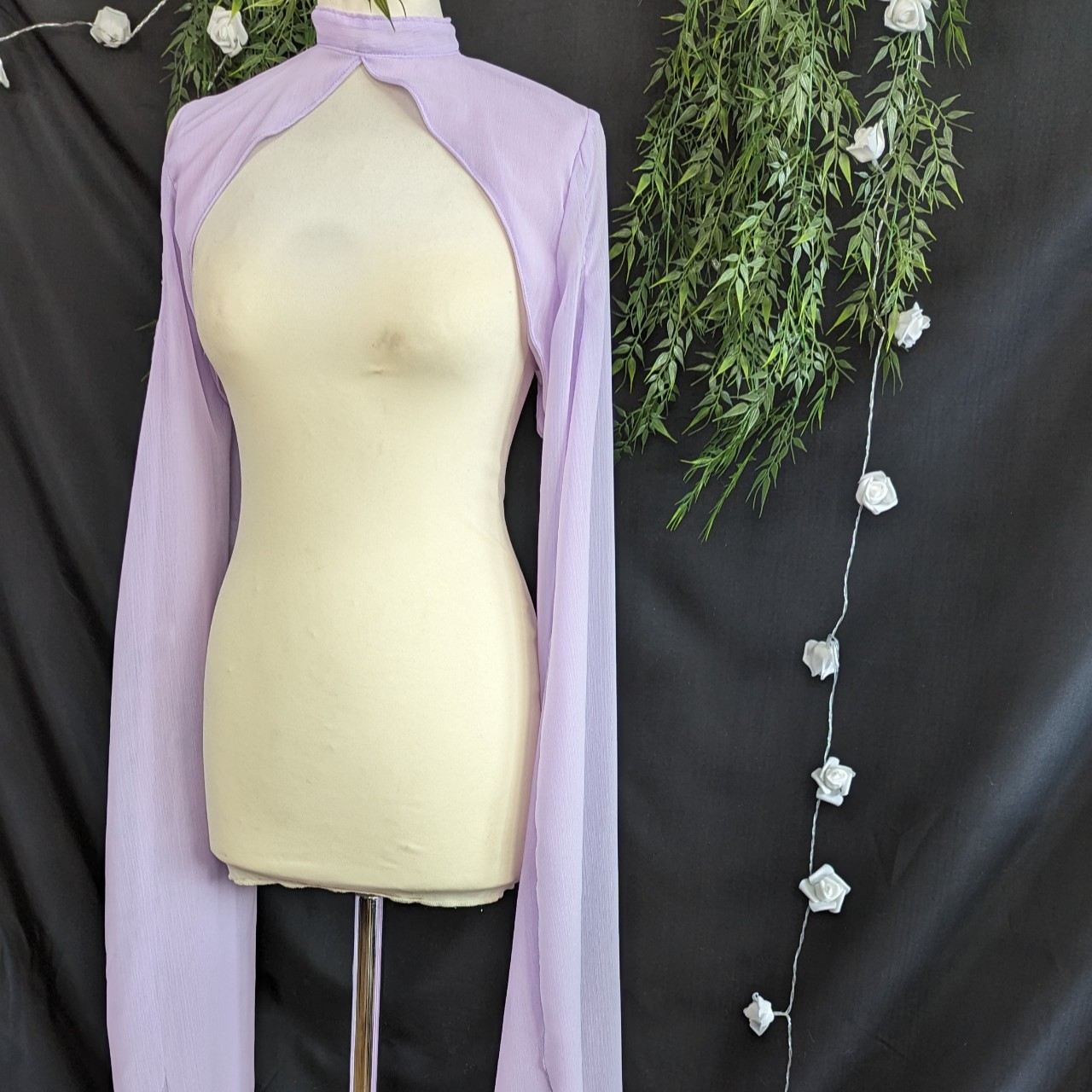 Bolero à manches longues ouvertes pour laisser apparaître le bras.
