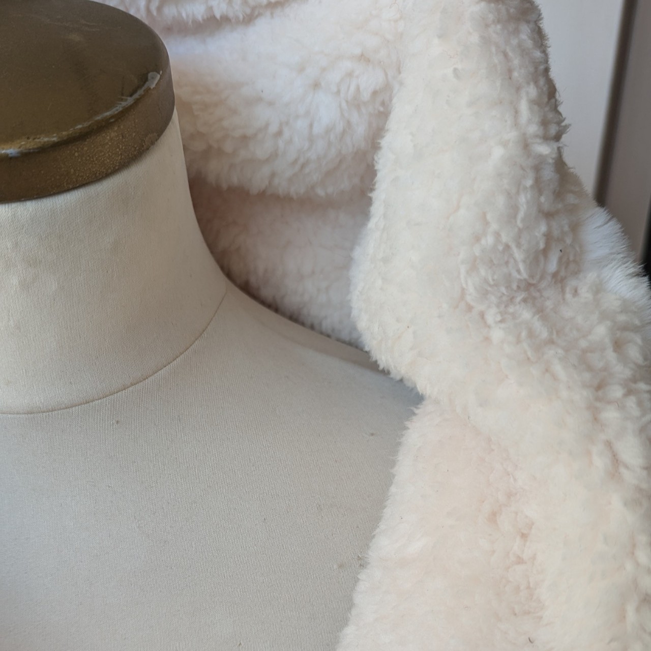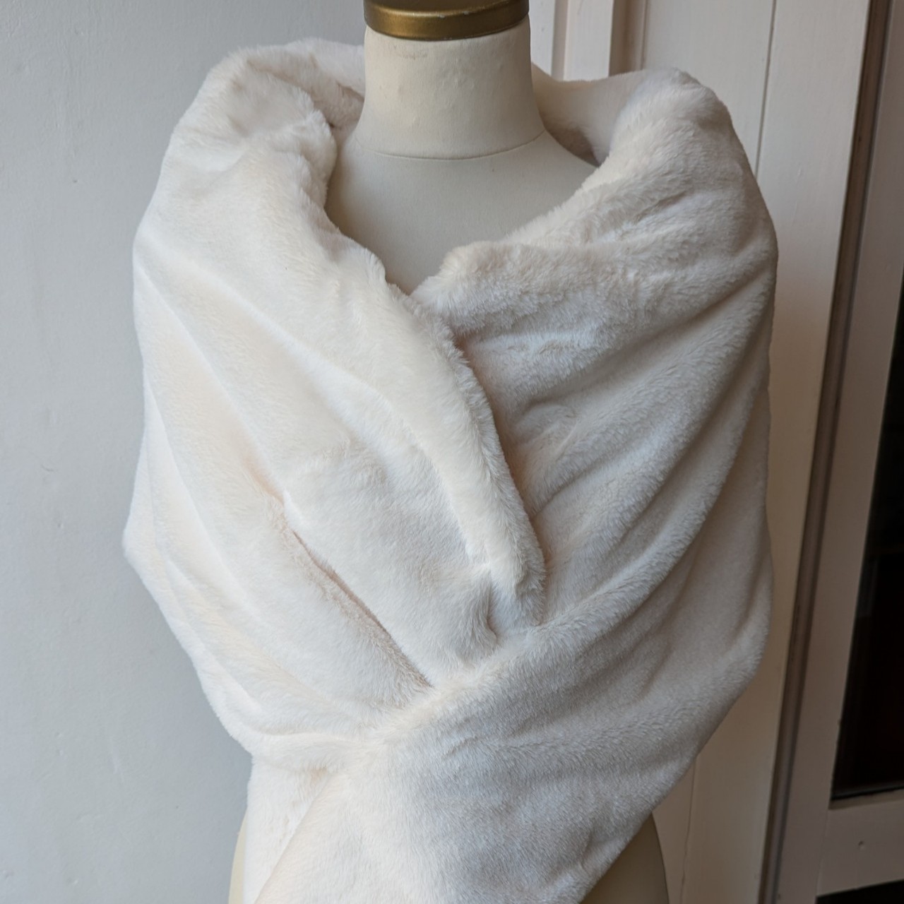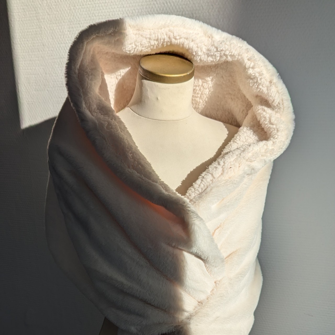 Châle en fausse fourrure, doublé avec un tissu chaud.