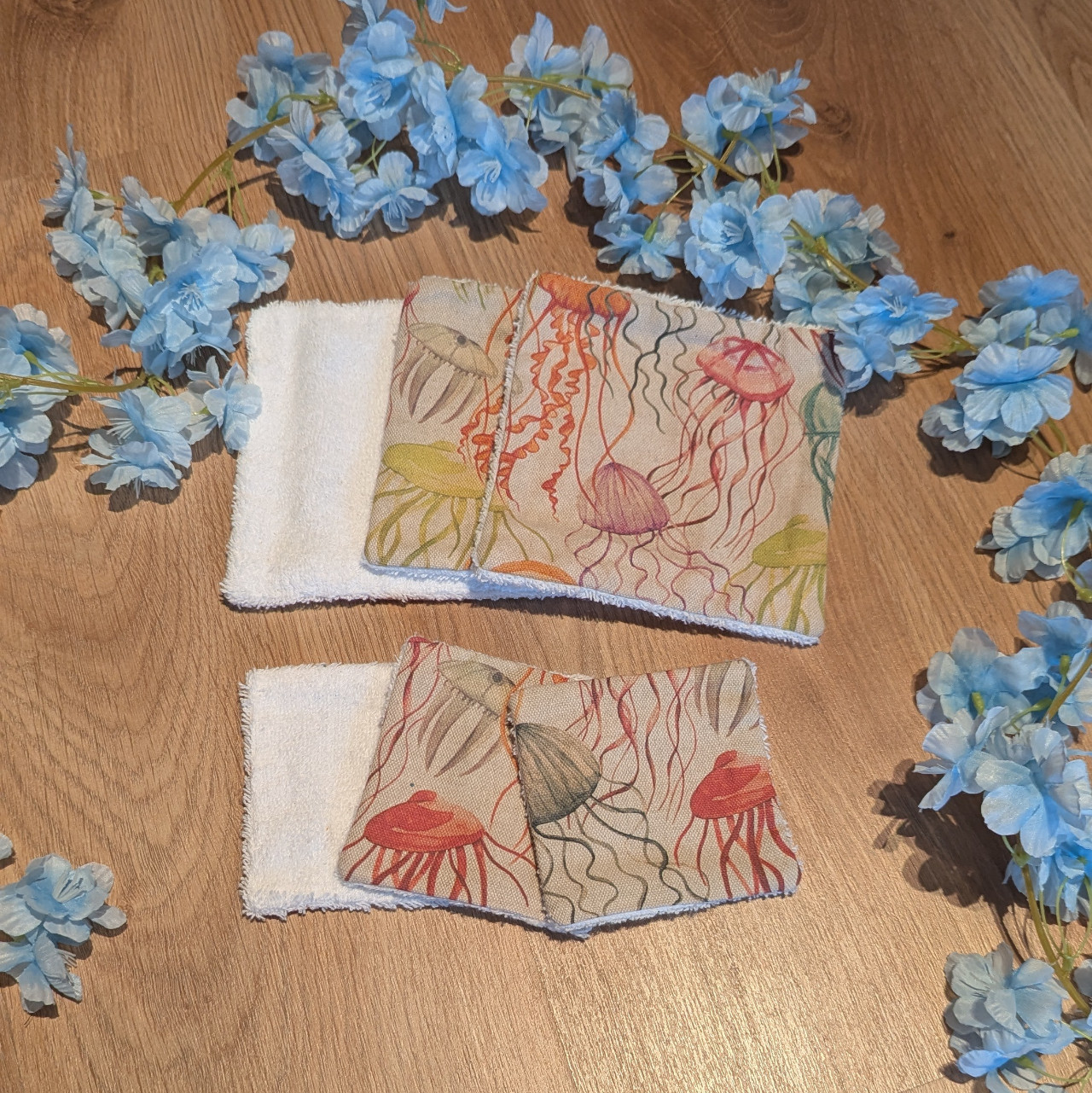Lingettes en coton et serviette éponge. Dimension Petite 10x10cm Grande 14.5×14.5cm