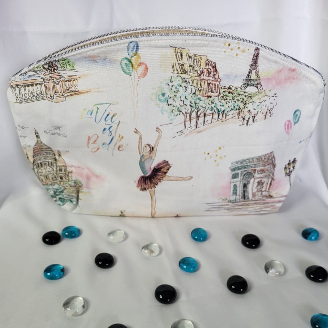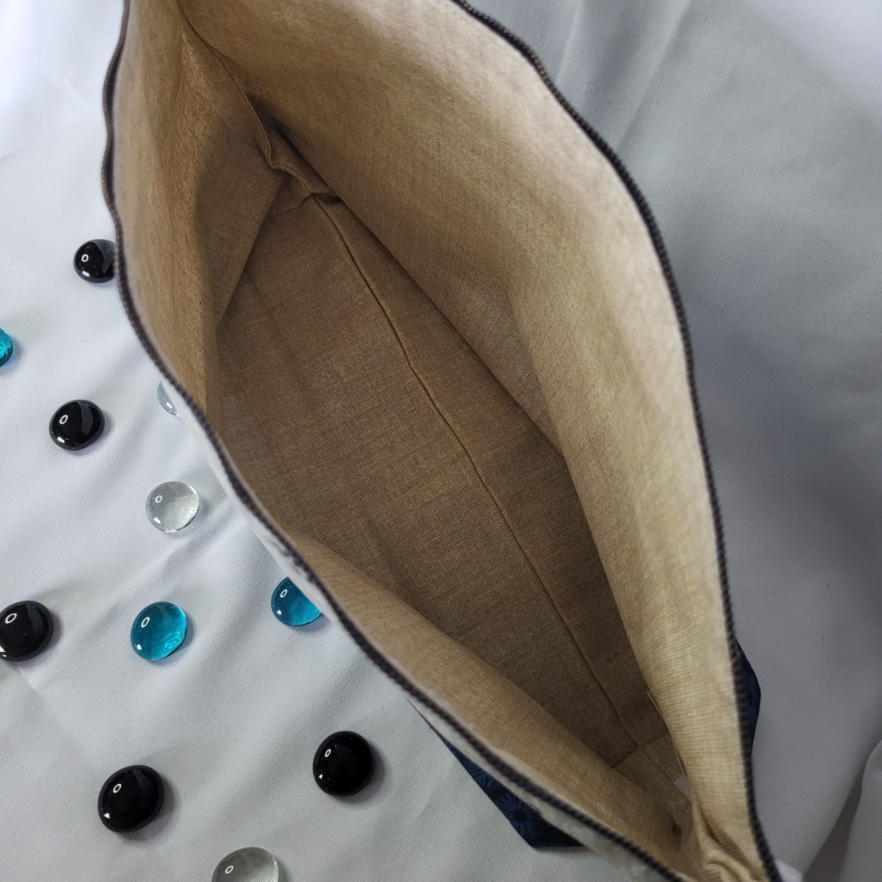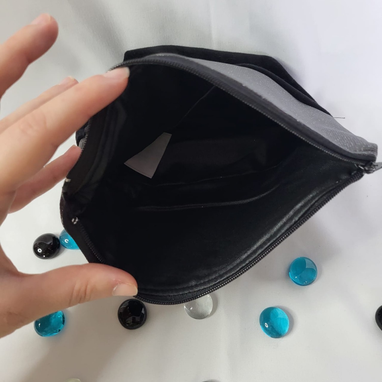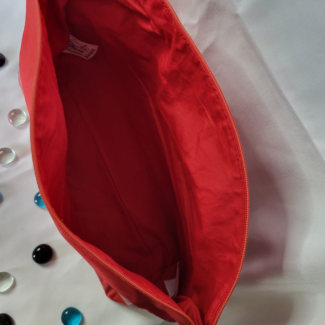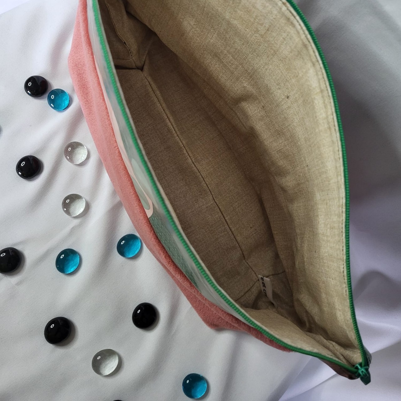 Pochette multi-usage – modèle unique, réalisée à partir de différentes matières pour valoriser les chutes de tissu 🙂
